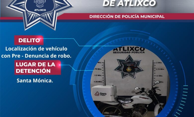 Puebla, Puebla.— Durante un patrullaje de rutina, elementos de la Secretaría de Seguridad Ciudadana de Atlixco localizaron una motocicleta con reporte de robo vigente en calles del municipio.